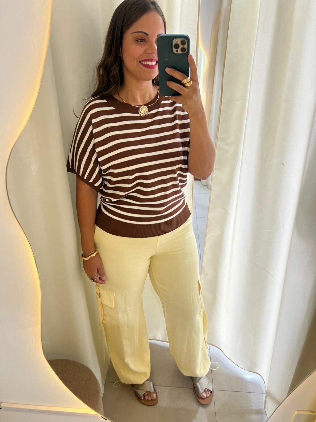 A Blusa Manga Ampla Modal é a escolha ideal para quem busca uma peça que une sofisticação, conforto e estilo. Confeccionada em tecido modal importado listrado, esta blusa traz uma textura macia e leve, perfeita para o clima brasileiro e o seu dia a dia.